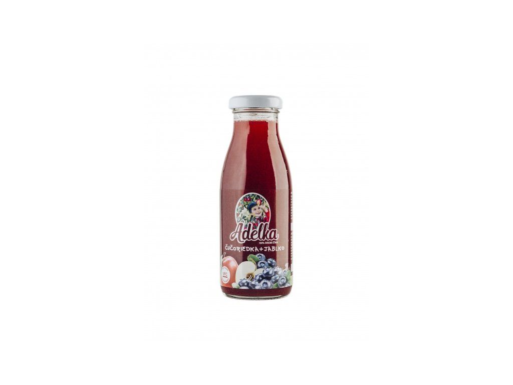Zloženie: BIO jablčná šťava NFC 90%, BIO čučoriedková šťava NFC 10%